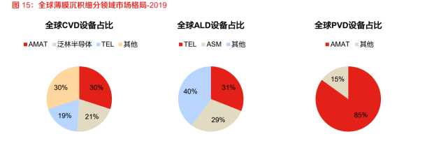 全球薄膜沉积设备市场由应用材料(AMAT)、泛林半导体(Lam Research)、东京电子(TEL) 和先晶半导体(ASM)等国际巨头公司垄断。