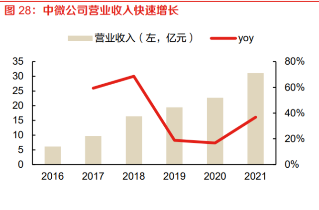 中微公司专注于集成电路和 LED 芯片关键制造设备的生产、研发、销售,主要产品包括刻蚀设备、 MOCVD 设备。中微公司 2021 年营业收入 31.1 亿元,同比增加 37%,毛利为 13.4 亿元,同比 增加 56%,归母净利润为 9.5-10.3 亿元,同比增加 93-109%,新签订单金额为 41.3 亿元,同比 增加超过 90%。公司近年来持续加大研发投入,2020年研发支出达到 6.4 亿元,占营收比为 28%。