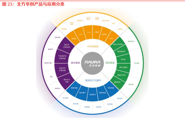 北方华创由七星电子和北方微电子战略重组而成,持续走在国内集成电路装备及精密电子元器件 产业的前沿。公司电子工艺装备主要包括半导体装备、真空装备和锂电装备,广泛应用于集成电 路、半导体照明、功率器件、微机电系统、先进封装、新能源光伏等领域。